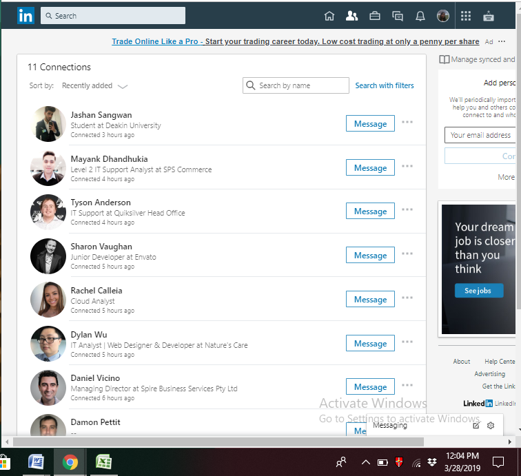 Thanks to LinkedIn , I have connected with many employers who are working in huge companies and I can gain knowledge from them about my IT field. In the above screenshot, Dylan Wu is working as a web-designer and developer in one of the big companies in Australia. through LinkedIn , I can text him anytime to ask any queries from him. I have connected with many a person which can give me a helping hand in my future related goals.